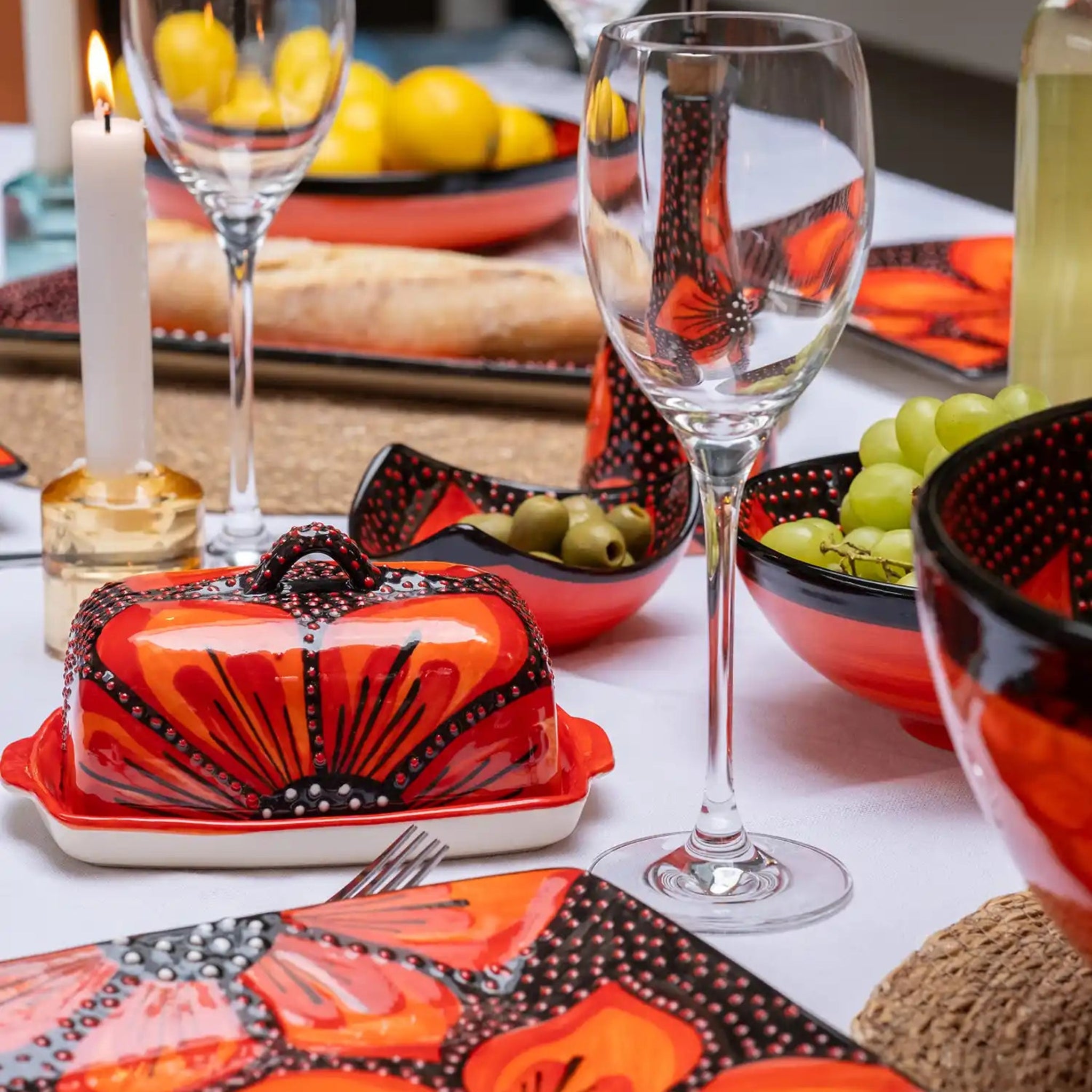 Eye-catching and brightly coloured ceramic tableware, handmade and painted in Spain. This unique and artistic Oil Drizzler is perfect for adding a pop of colour to your dining table. The hand-made and hand-painted design ensures that each piece is one-of-a-kind, making it a great addition to your kitchenware collection.