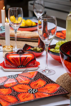 Eye-catching and brightly coloured ceramic tableware, handmade and painted in Spain. This unique and artistic Tapas Dish is perfect for adding a pop of colour to your dining table. The hand-made and hand-painted design ensures that each piece is one-of-a-kind, making it a great addition to your kitchenware collection.